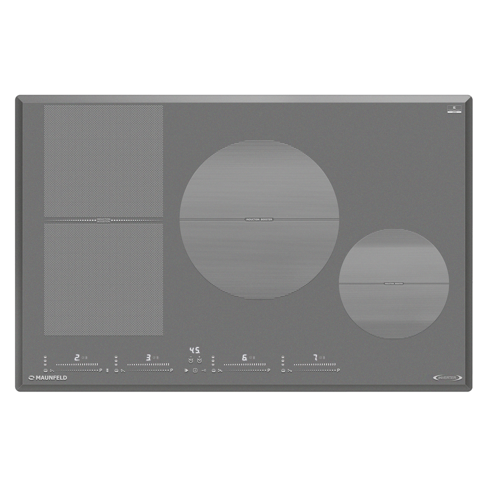 Когда нужна быстрая мощность, выручит Booster — функция кратковременного повышения мощности для стремительного закипания воды или интенсивного обжаривания. Максимальная подключаемая мощность панели достигает 7200 Вт, что позволяет комфортно готовить на всех четырёх зонах.