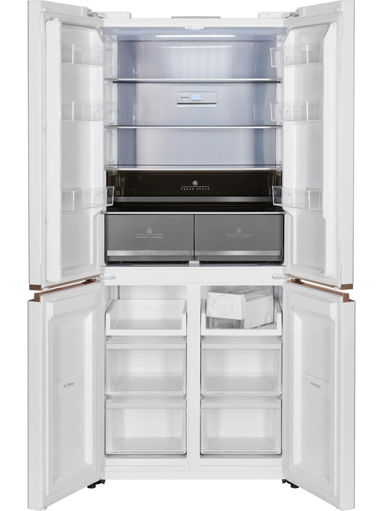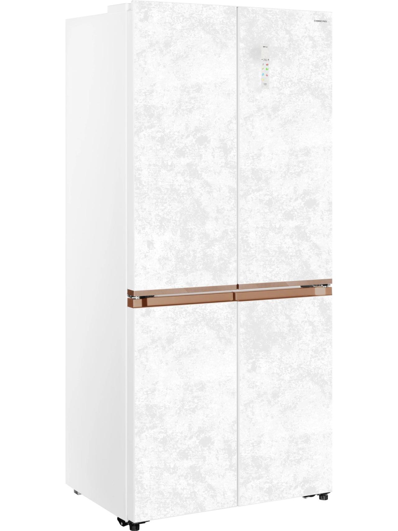 Инверторный холодильник HIBERG i-RFQ 630G WS – изысканный представитель бренда. Эффектный фасад из закаленного стекла в белом цвете с эффектом мрамора станет украшением любого кухонного и столового интерьера. Усовершенствованная конструкция отдельно стоящей модели и глубина 60 см позволят при необходимости гармонично интегрировать холодильник в мебельный гарнитур: достаточно всего 3 мм свободного пространства по бокам. А угол открытия двери в 90 градусов не препятствует полному выдвижению ящиков.