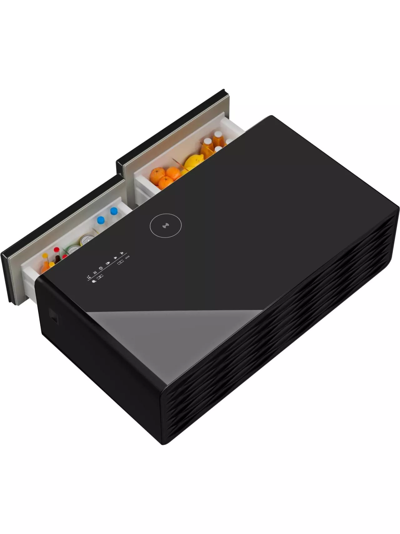 Холодильный барный центр – это больше, чем журнальный стол: модель совмещает функции холодильника, музыкального центра, зарядной станции и источника питания для гаджетов.
