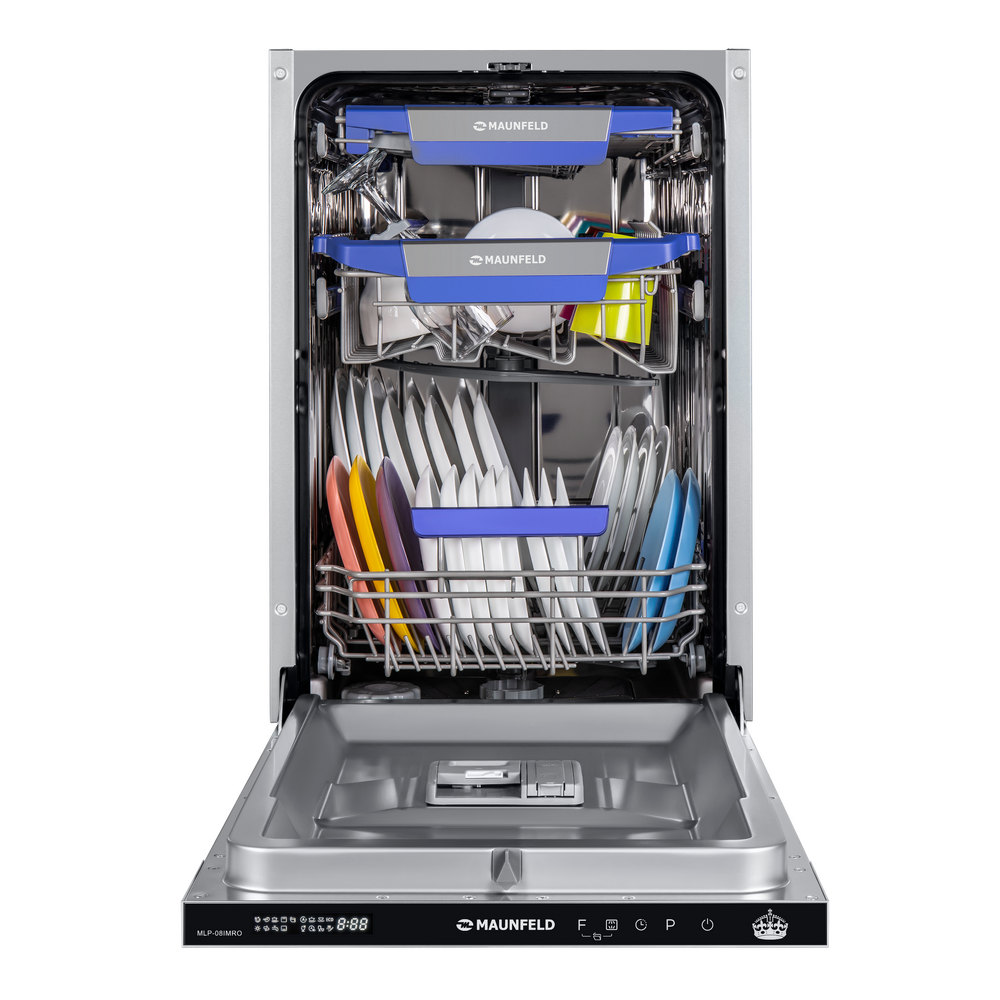 Узкая встраиваемая посудомоечная машина MAUNFELD MLP-08IMRO создана для кухонь, где важен каждый сантиметр, но не хочется жертвовать удобством. При ширине 45 см она бережно отмывает 10 комплектов, экономя место и ваше время.