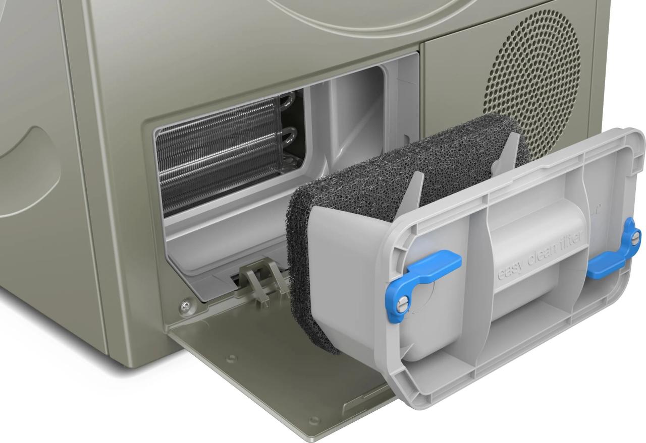 Повседневное использование делает удобным LED-дисплей и понятное электронное управление с поворотным переключателем и сенсорными Touch-элементами. Индикация наполнения ворсового фильтра и контейнера для конденсата подскажет, когда требуется обслуживание, а звуковой сигнал сообщит об окончании программы.