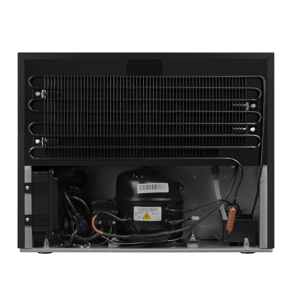 Корпус из металла в чёрном цвете, полки из массива бука и компактные габариты обеспечивают универсальность для разных интерьеров и сценариев встройки. Энергоэффективная работа (135 кВт·ч/год) и электронный термостат снижают заботы по эксплуатации.