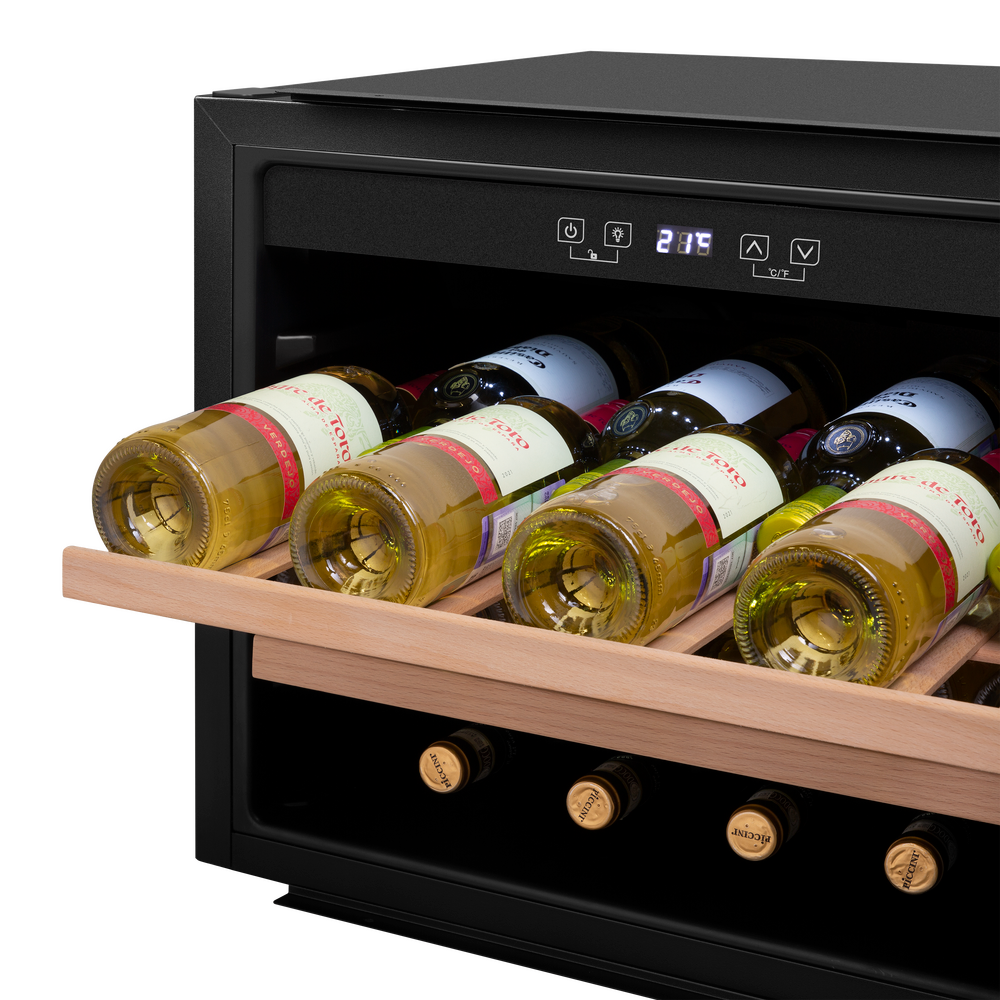 Широкий температурный диапазон 5–20 °C позволяет хранить красные, белые и игристые вина, а также готовить их к подаче. Встроенный вентилятор обеспечивает равномерное распределение холода по всем полкам, сохраняя стабильные условия хранения.